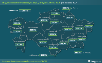 В региональном разрезе наибольшее удорожание в секторе наблюдалось в Северо-Казахстанской области, где стоимость игрушек выросла сразу на 25,3% по сравнению с июнем прошлого года. Помимо этого, существенное увеличение цен было зафиксировано в Атырауской (на 20,6%), Западно-Казахстанской (на 14,5%) и Актюбинской (на 13,7%) областях, а также в Алматы (на 12,2%).