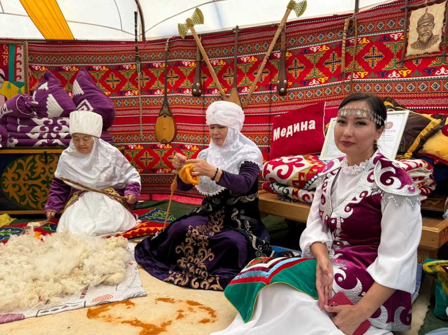 Форум продолжился этнокультурной программой под открытым небом. На площади первого Президента было многолюдно. Подготовка к мероприятию началась с 8 утра. Были выставлены юрты, в которых представители старшего поколения показывали и рассказывали об обычаях и традициях казахского народа, пряли изделия из овечьей шерсти, пели песни и угощали гостей национальными блюдами.