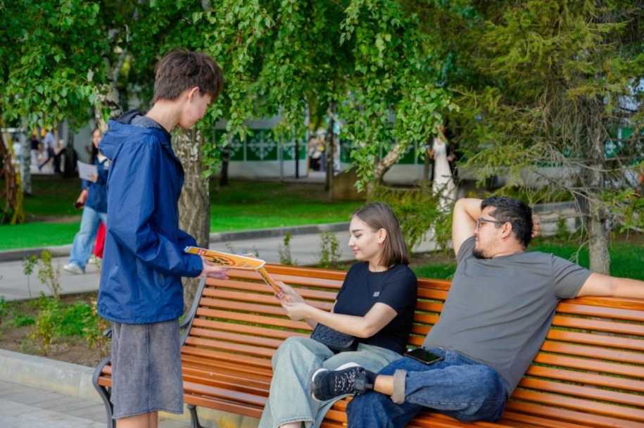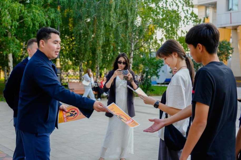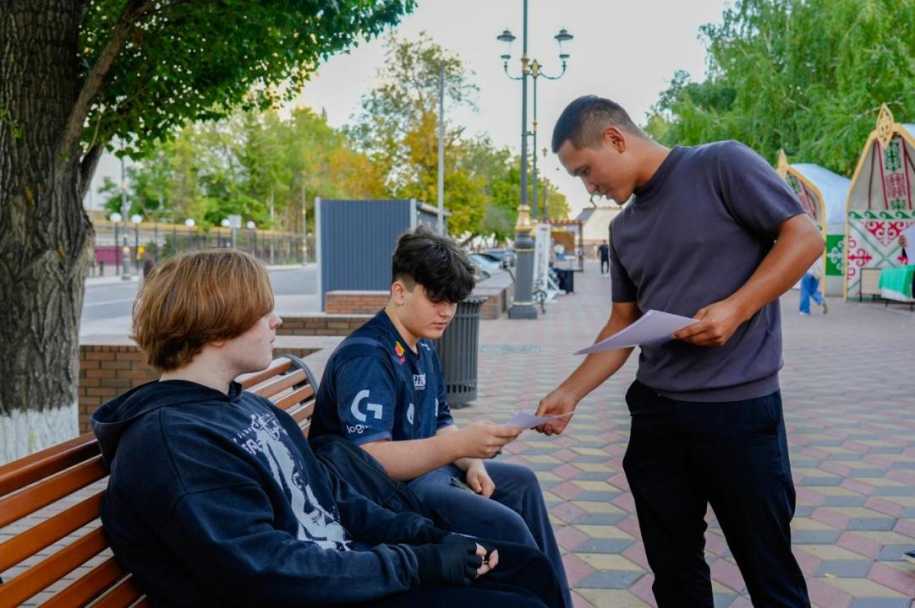 В ходе мероприятия участники раздали жителям города специальные листовки и провели агитационную работу около памятника Кенесары.