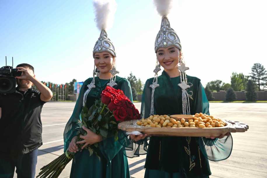 В международном аэропорту Манас Главу нашего государства встретил Президент Кыргызстана Садыр Жапаров.