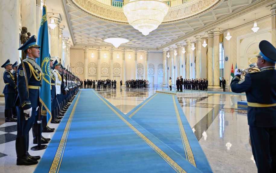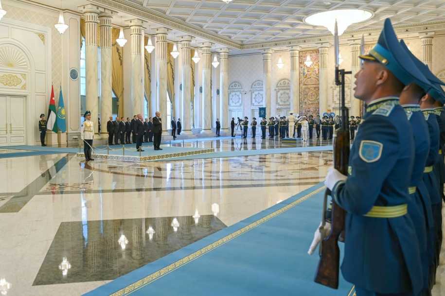 Касым-Жомарт Токаев и Король Абдалла II представили друг другу членов делегаций, после чего начальник роты почетного караула отдал приветственный рапорт, прозвучали гимны Казахстана и Иордании.