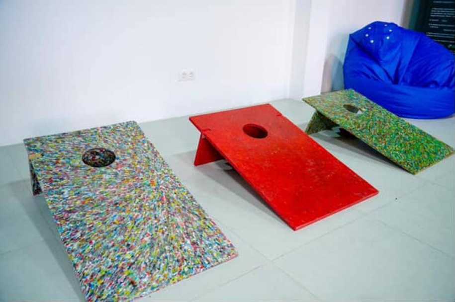 Для удобства посетителей в хабе установлены пять специальных мусорных баков для раздельного сбора отходов: для пластиковых пакетов, алюминиевых банок, бумаги, пластиковых бутылок и крышек, а также для прочих пластиковых изделий. Такой подход помогает сортировать материалы на месте и облегчает дальнейшую переработку. Посетители могут не только сдать отходы, но и лично увидеть, как из переработанных пластиковых крышек и бутылок создаются реальные предметы: брелоки, подставки для телефонов, элементы интерьера и даже столешницы. По словам руководителя проекта в Астане Айгерим Жарылгаповой, цель хаба — не просто приём вторсырья, а формирование новой культуры потребления и отношения к отходам.