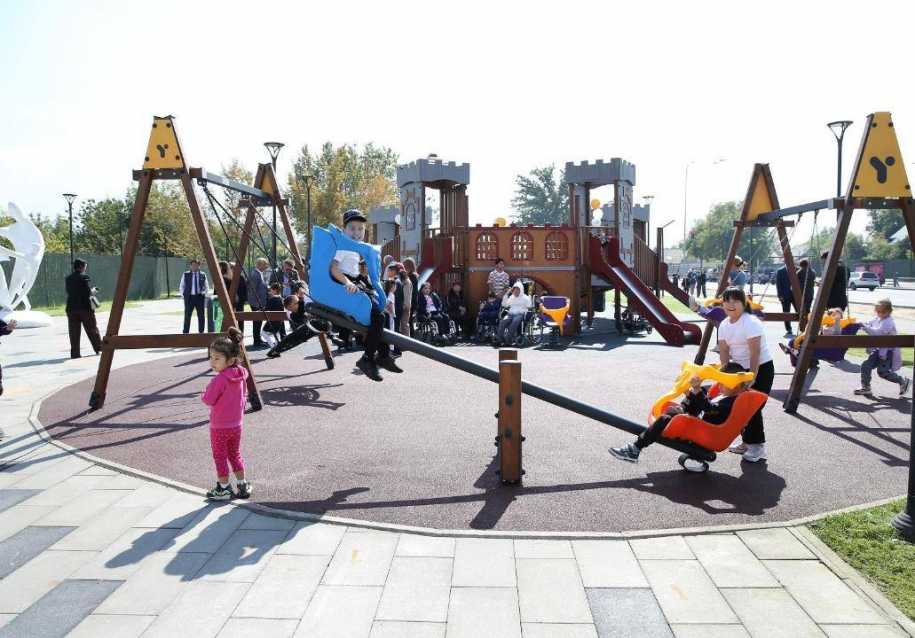 После строительства большой транспортной развязки здесь освободились несколько участков. Мы решили использовать одно из этих пространств для создания инклюзивной площадки. Она дополнена прогулочными зонами, малыми архитектурными формами и скульптурой «Бақытты отбасы», символизирующей ценность семьи и гармонию поколений, – отметил он.