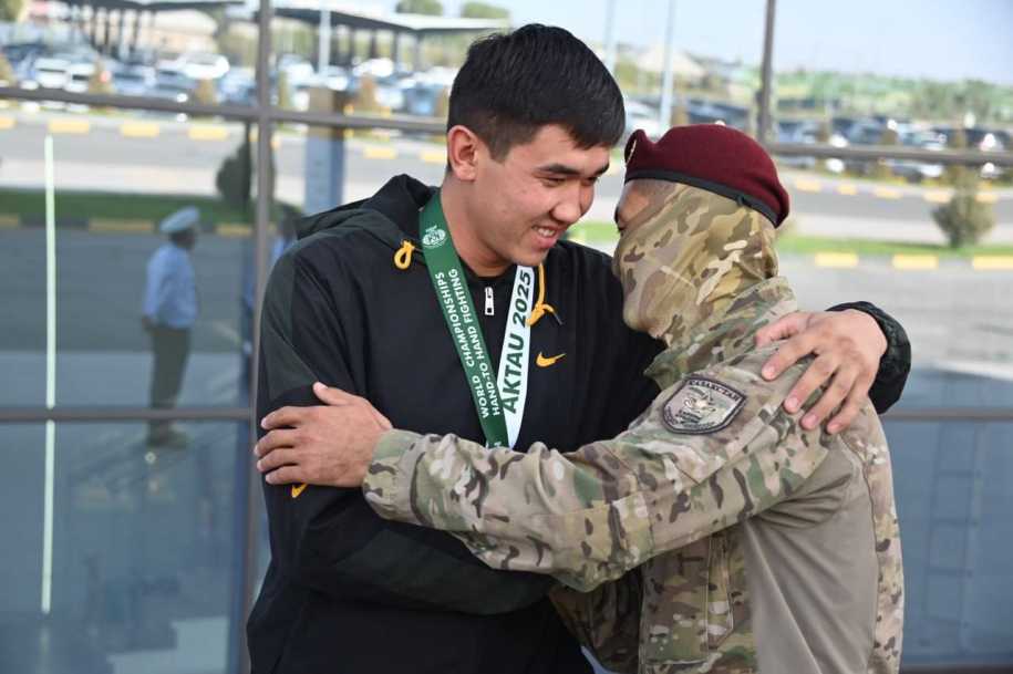В аэропорту города Шымкента состоялась торжественная встреча чемпиона мира по рукопашному бою среди молодежи лейтенанта Дархана Жорагула. Об этом сообщили с в пресс-службе Министерства обороны РК, передает kazlenta.kz.