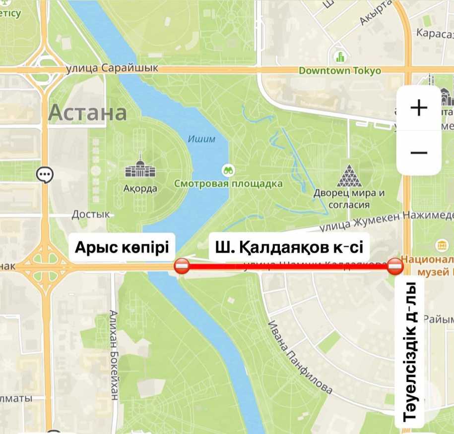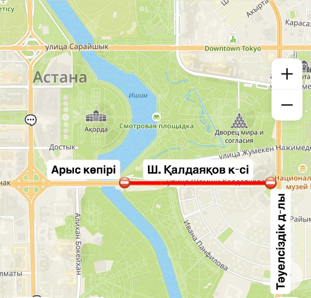 С 6 по 8 октября в Астане будет частично ограничено движение транспорта по улице Ш.Калдаякова – на участке от проспекта Тәуелсіздік до моста Арыс, передает kazlenta.kz.