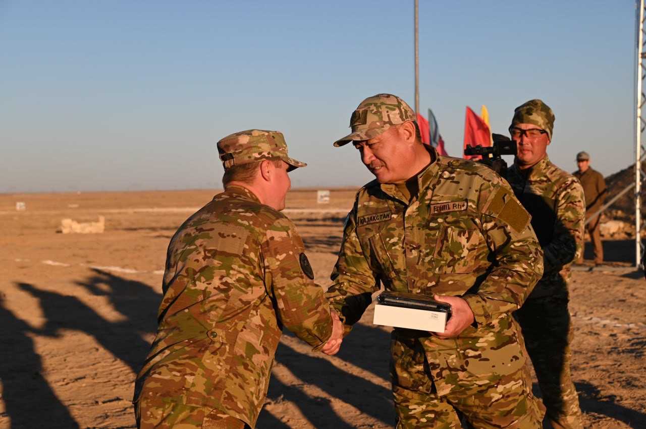На учебном полигоне близ п. Бейнеу состоялась церемония закрытия оперативно-стратегического командно-штабного учения «Айбалта-2025», в которой приняли участие командование Вооруженнвх сил, аким Бейнеуского района Рахымжан Шалбаев и военнослужащие. Об этом сообщили в пресс-службе МО РК, передает kazlenta.kz.