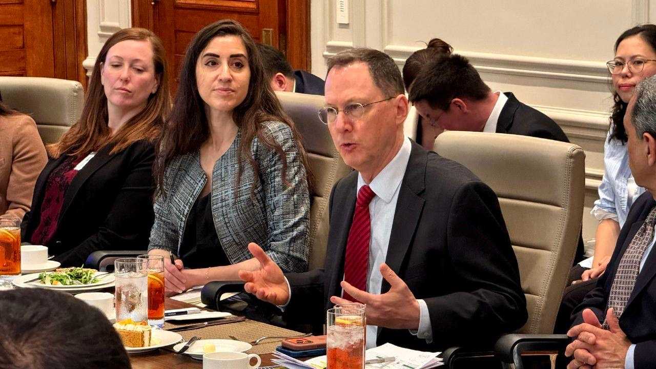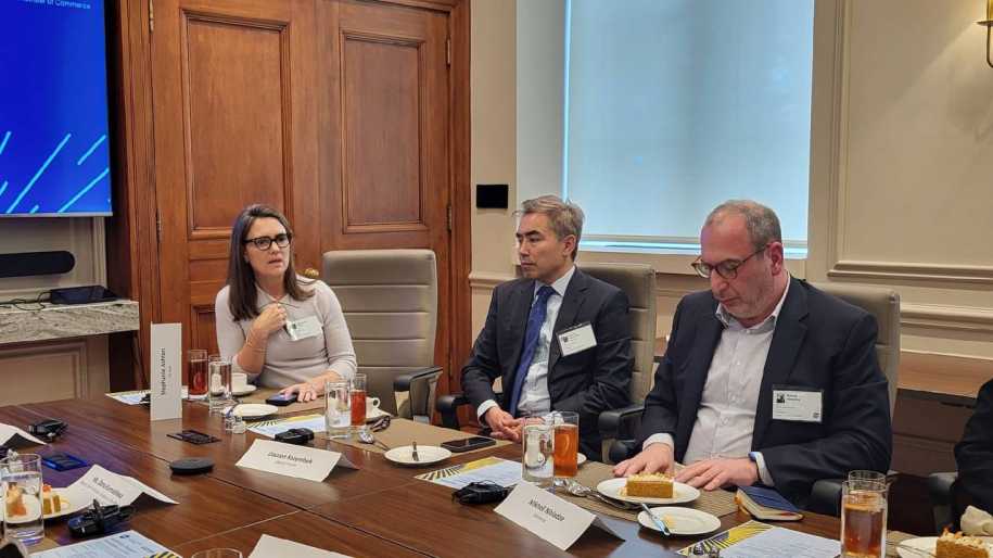 Американскую сторону представили старший вице-президент по делам Ближнего Востока, Турции и Центральной Азии Торговой палаты США Куш Чокси, топ-менеджеры ведущих корпораций Chevron, Brownstein, Bectel, ExxonMobil, Citi, Mastercard, Boeing, LanzaJet и многие другие.