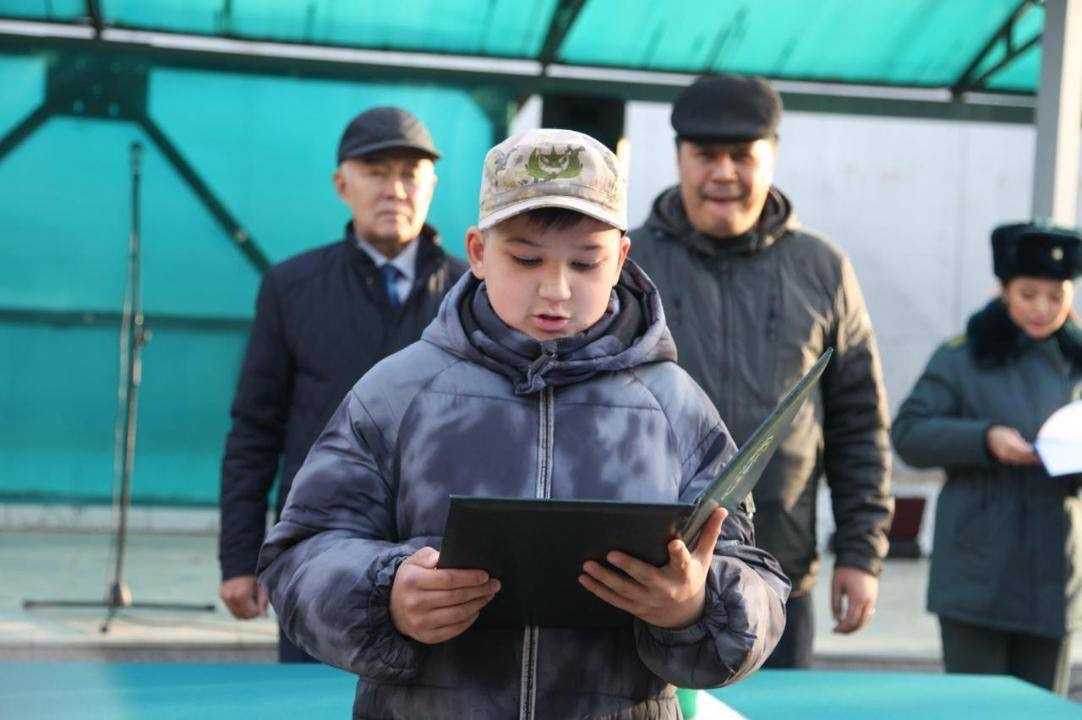 Особым моментом дня стала торжественная церемония принятия присяги новым участником клуба Рустамом Сыздыковым. Церемонию принятия Военной присяги провели ветераны республиканского общественного объединения «Застава тарландары».