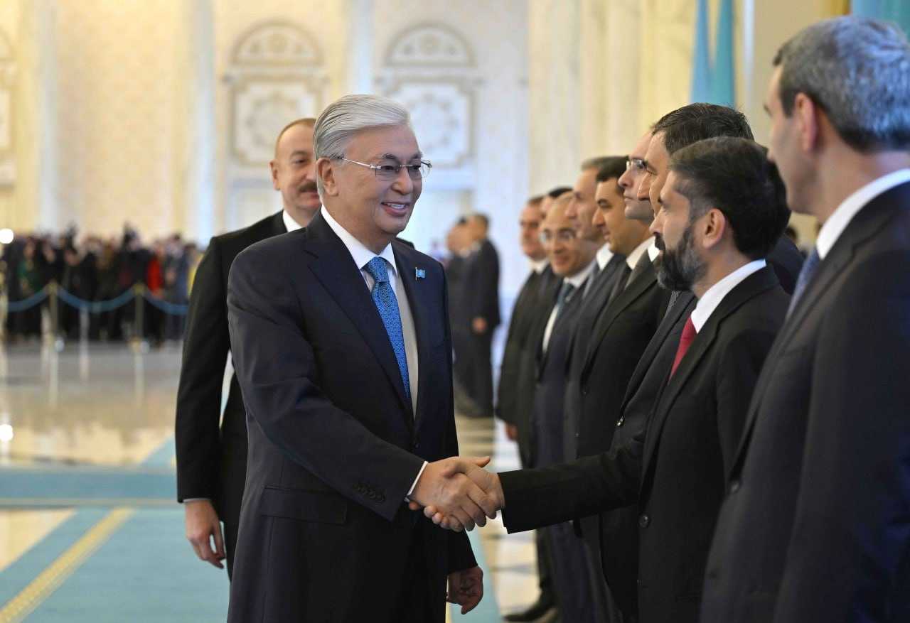 Касым-Жомарт Токаев и Ильхам Алиев представили друг другу членов официальных делегаций. Начальник почетного караула отдал приветственный рапорт главам государств. Были исполнены государственные гимны двух стран.