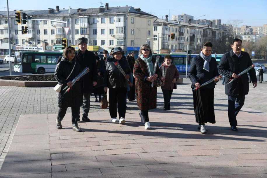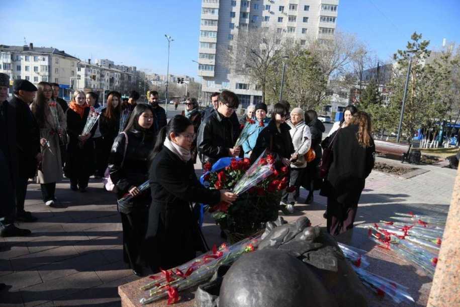 В честь памятной даты состоялось возложение цветов к памятнику Алии Молдагуловой.