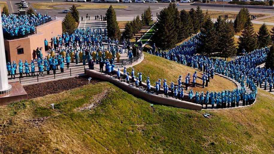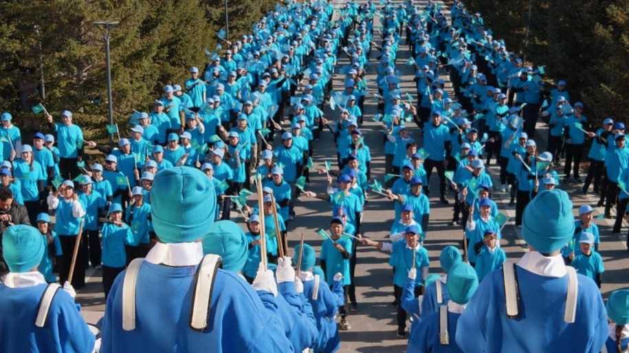 Во время исполнения участники выстроились в пять линий, образовав раскрытую ладонь — символ единства, дружбы и открытости молодого поколения Казахстана. Эта ладонь стала олицетворением тепла и поддержки, ведь именно в единстве сердец рождается сила страны.
