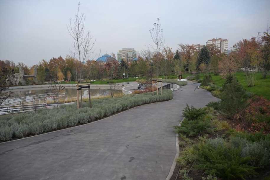 Построен пруд, который зимой будет использоваться как каток. Завершаются работы по пешеходным, беговым и асфальтным дорожкам, монтажу системы автополива и наружного освещения.