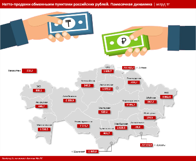 - в июне обменные пункты купили у населения рублей больше, чем продали, на 40,5 млрд тенге,