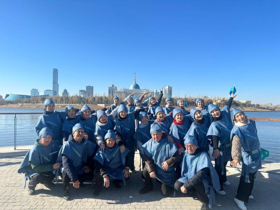 Пожилые жители столицы исполнили красивый танец на фоне Акорды, как символа вдохновения, единства и любви к Родине.