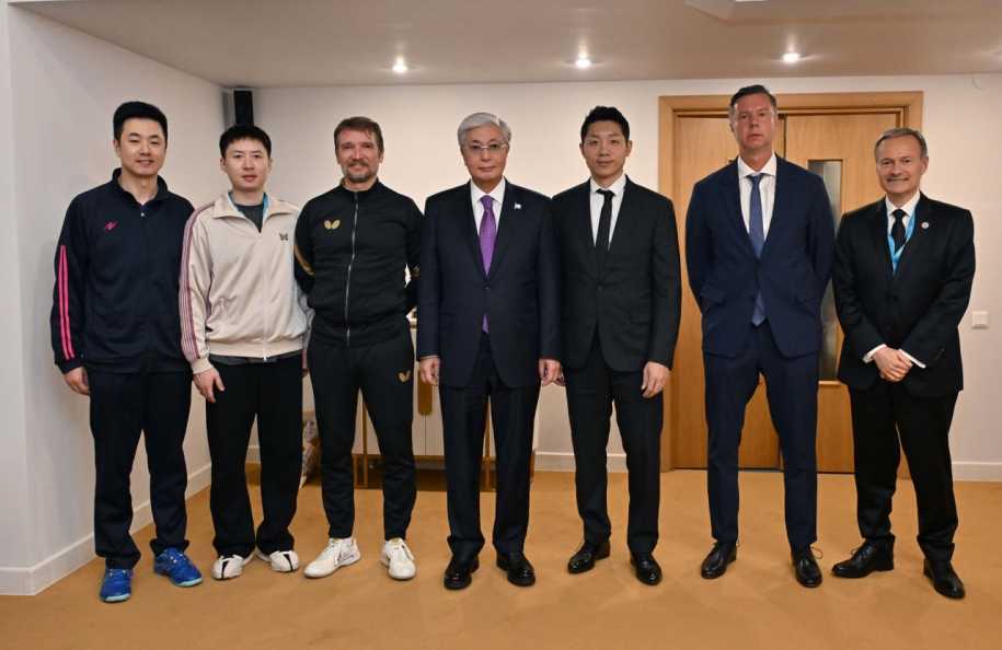 Глава государства провел беседу со звездами и легендами мирового настольного тенниса, в числе которых были чемпион Олимпийских игр Сюй Синь (Китай), чемпион мира и призер Олимпийских игр Шлагер Вернер (Австрия), чемпионы мира Фан Бо (Китай) и Чу Се Хёк (Республика Корея).