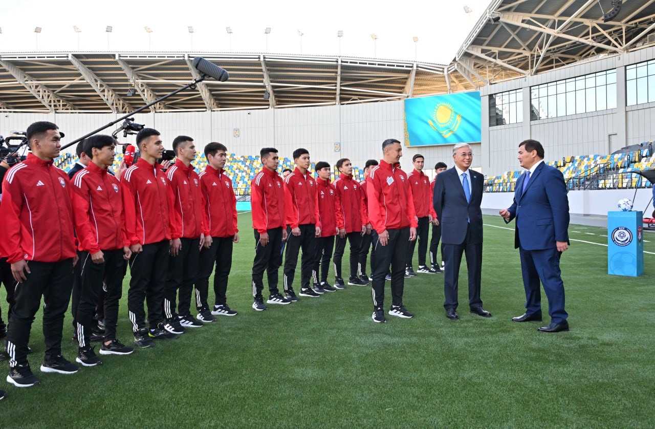 Во время посещения Президент пообщался с игроками футбольного клуба «Қайсар».