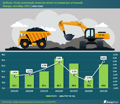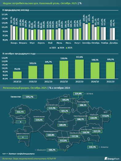 В октябре 2025 года уголь подорожал в среднем на 1,4% за месяц. Годовой рост цен составил 9,2%, что выше показателя прошлого года (8,5%).