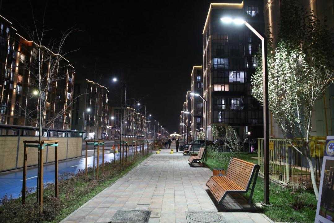 Освещение также установлено на девяти жилых домах по пр. Алатау и ул. Сабденова. Применено современное энергосберегающее оборудование, обеспечивающее равномерную подсветку фасадов и дворовых территорий. Реализация подобных проектов повышает уровень безопасности и комфорта в ночное время, а также формирует эстетичный облик новых жилых кварталов.