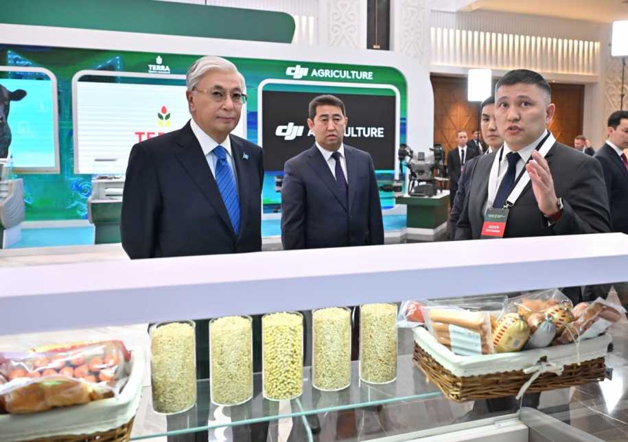 На полях второго Форума работников сельского хозяйства Президент Касым-Жомарт Токаев ознакомился с выставкой цифровых решений, применяемых в агропромышленном комплексе.