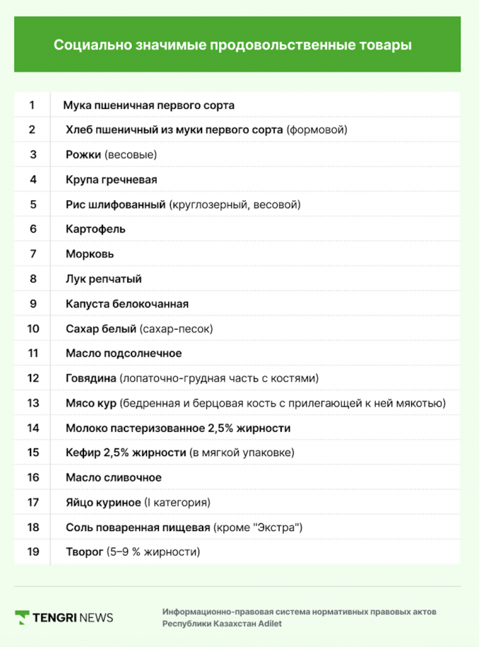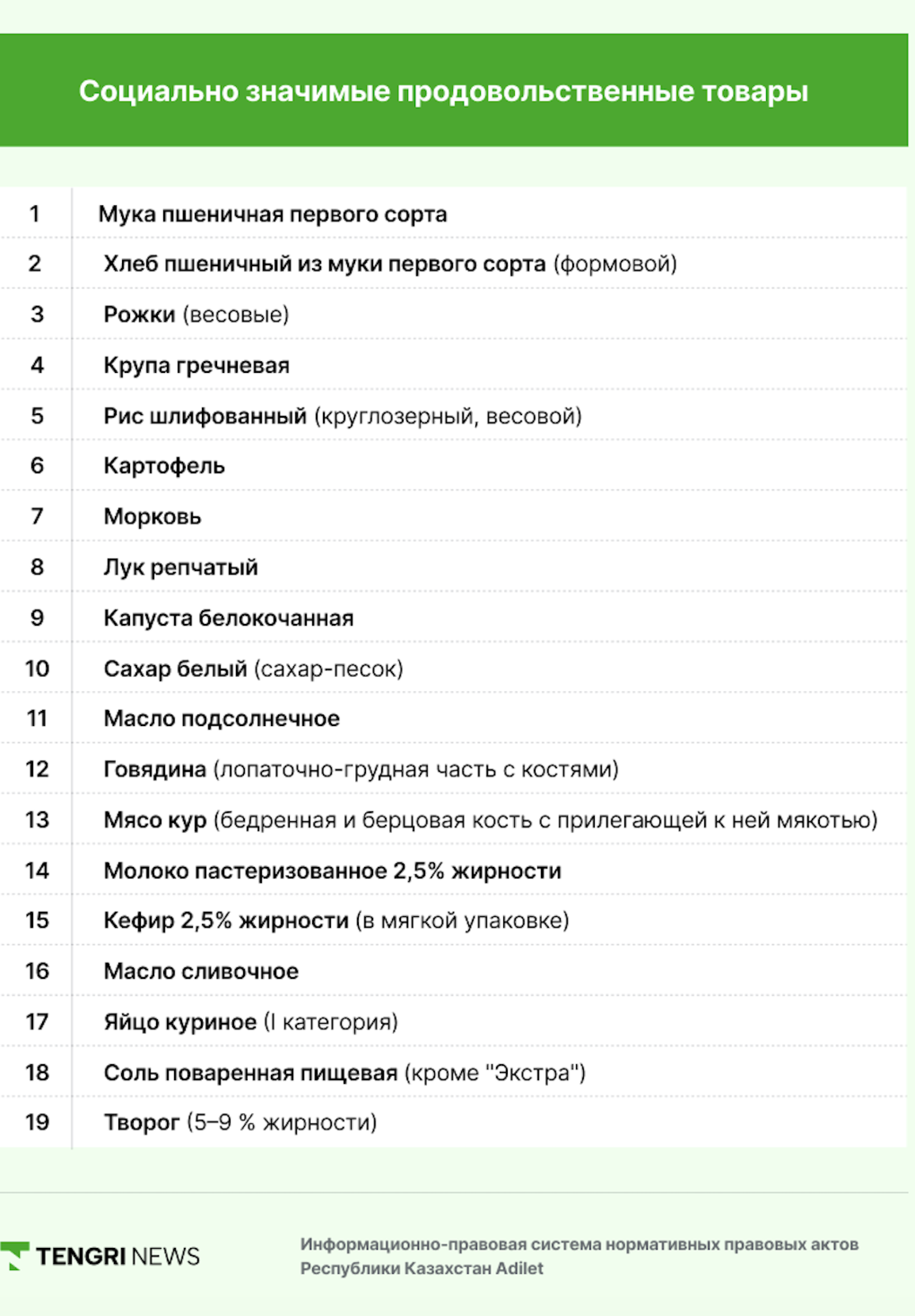 "Среди них есть как товары с высокой долей импорта, так и те, цены на которые влияют в основном на месячную, но не годовую инфляцию. Из этого списка мы определили 23 позиции, которые потенциально могут быть включены в перечень социально значимых. Теперь будем обсуждать предложения с бизнесом", — отметила Айжан Бижанова.