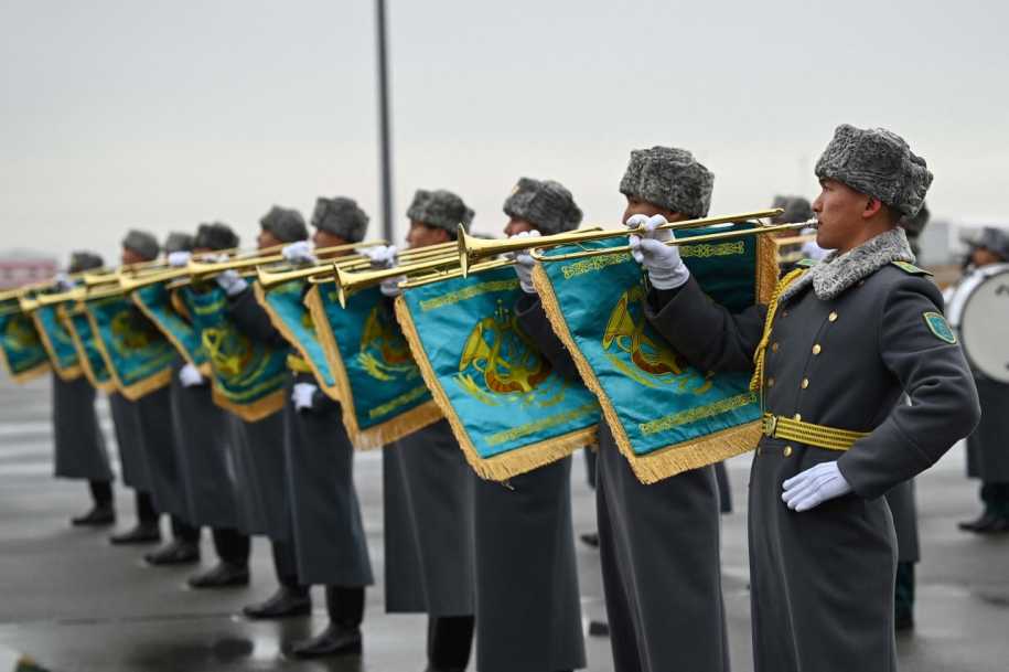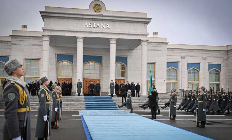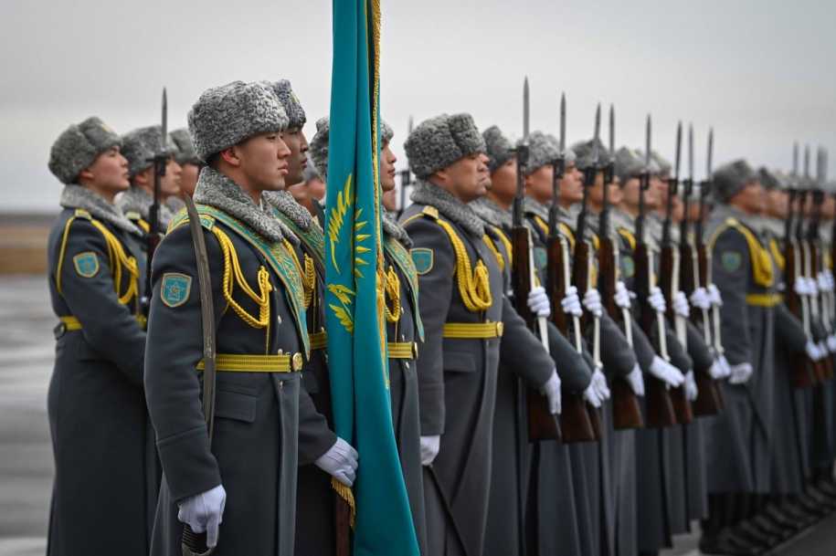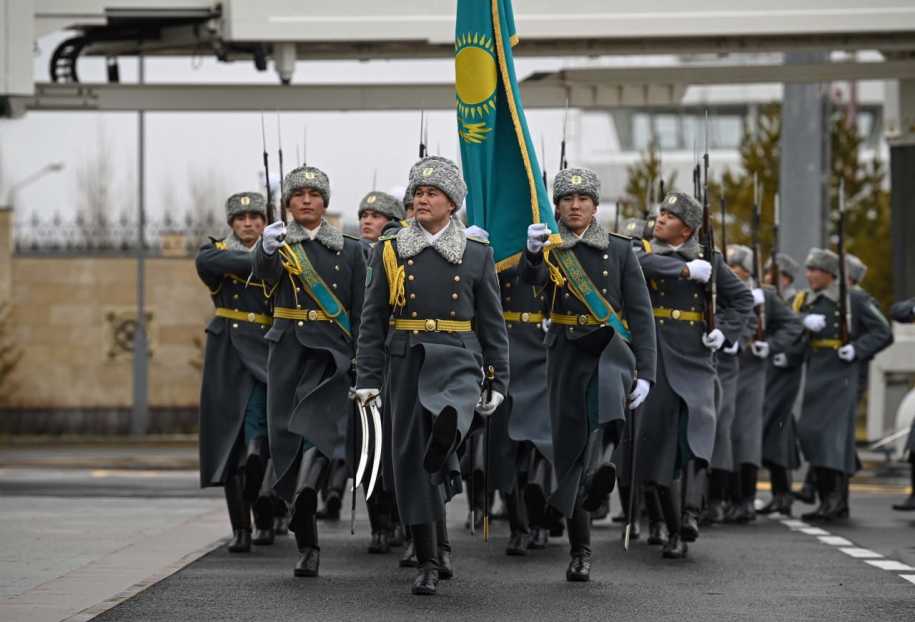 В честь высокого гостя в международном аэропорту Астаны была выстроена рота почетного караула.