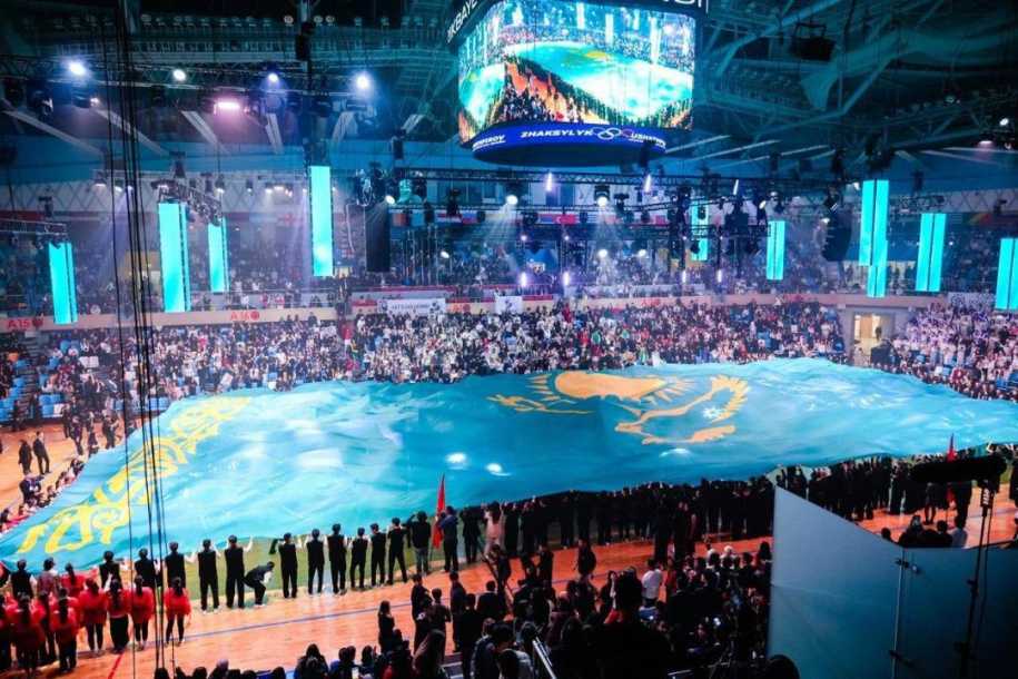 Одновременно на арене был развернут и флаг Казахстана впечатляющей площади 800 кв. м, ставший главным патриотическим акцентом церемонии.