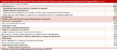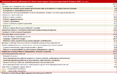 Руководители и госслужащие занимают лишь 6,2% среди тех, кто трудится более 41 часа. Из 1,3 млн перерабатывающих всего 1,4 тыс. – это высшие должностные лица, законодатели и государственные служащие.