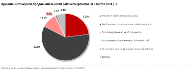 В большинстве случаев – около 60% – сотрудники остаются на работе дольше по требованию работодателя.
