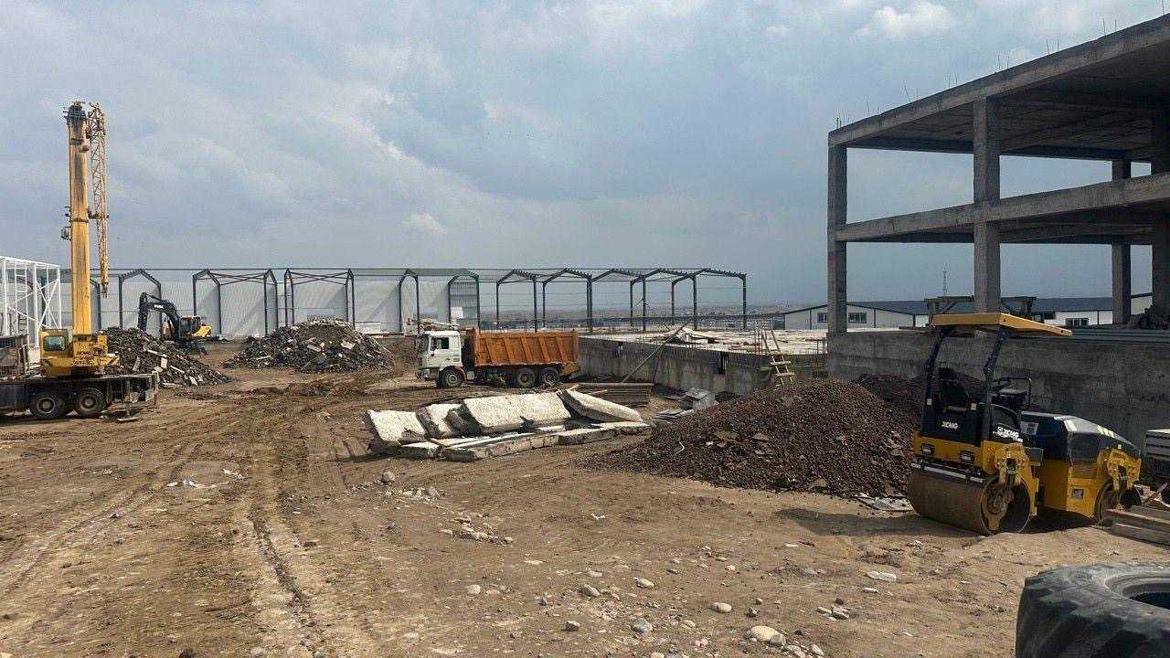 Готовность объекта на текущий момент составляет 43%: завершено возведение каркасных конструкций производственных зданий и многоэтажной бетонной конструкции административного здания.