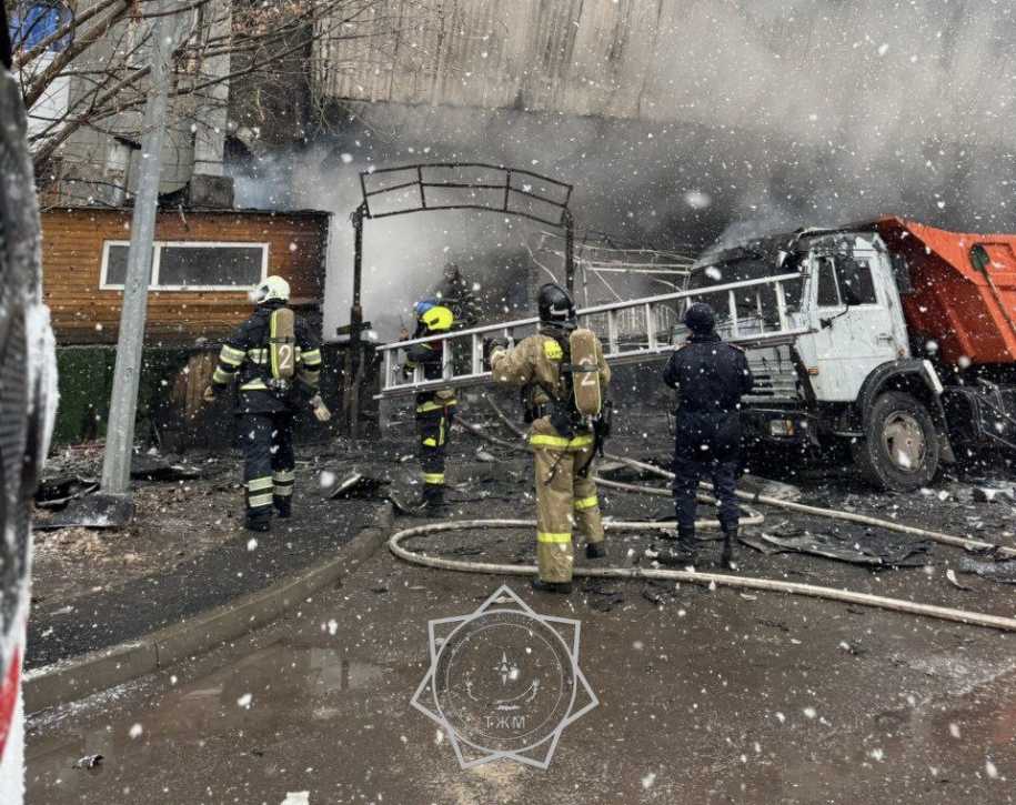 По данным МЧС, от теплового воздействия также пострадал припаркованный рядом грузовой автомобиль.