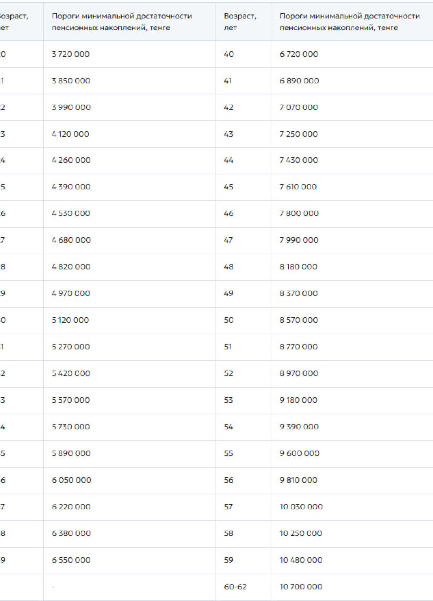 Единый накопительный пенсионный фонд (ЕНПФ) обновил пороги минимальной достаточности (ПМД) для досрочного снятия пенсионных накоплений на 2026 год, передает kazlenta.kz.