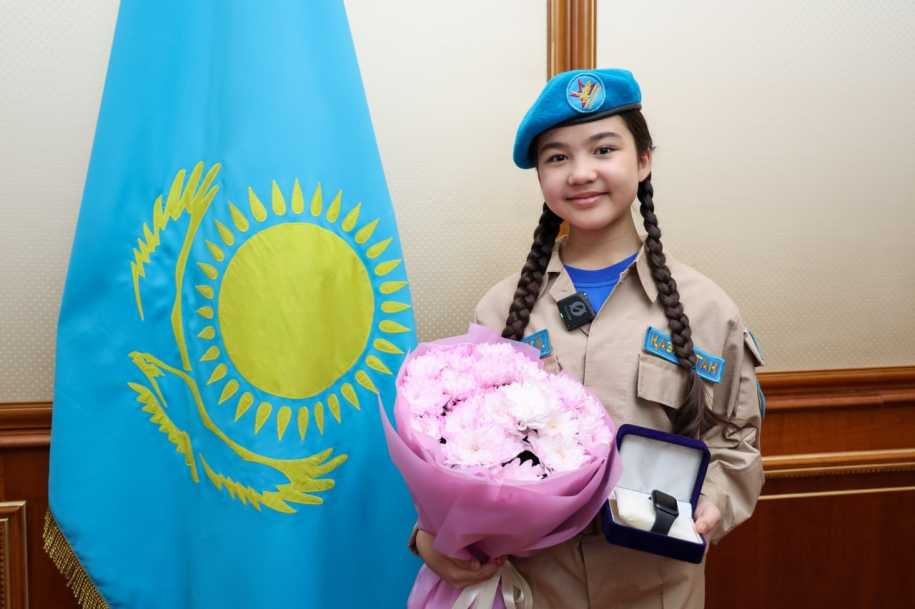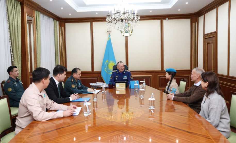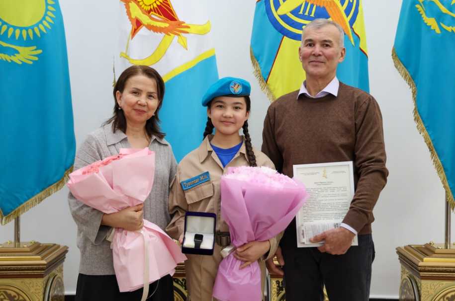 По возвращении в Астану с важным событием 12-летнюю Жасмину Тузелову поздравил руководитель оборонного ведомства Даурен Косанов.