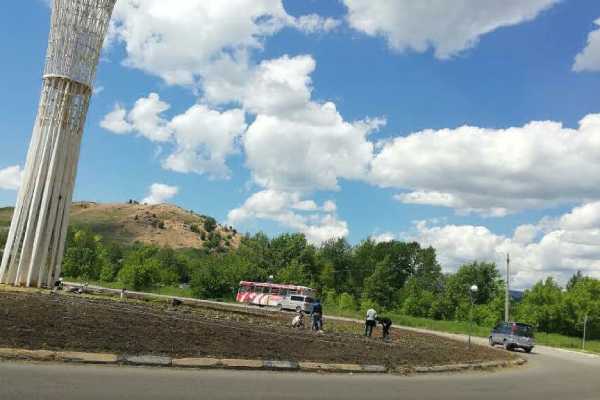 О том, что территорию уже начали озеленять сообщил с соцсетях аким города. На фото видно, что рабочие разметили площадку у Байтерека под высадку цветов и успели посадить несколько растений.