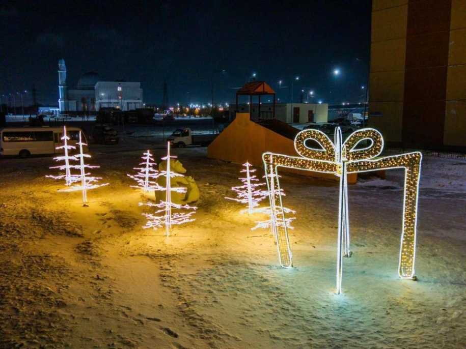 Кроме того, во дворах домов № 3, 3/1 и 3/2 по улице Жубанова в микрорайоне Целинный обустроен большой каток. На проспекте Республики и по улице Ж. Ташенова установлено новогоднее освещение.
