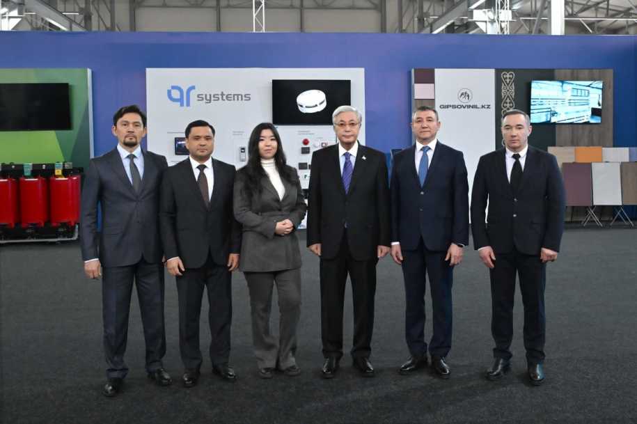 Касым-Жомарту Токаеву показали продукцию заводов «Гипсовинил», специализирующегося на производстве гипсовиниловых панелей, и QR Systems, выпускающего пожарную сигнализацию, видеокамеры и домофоны.