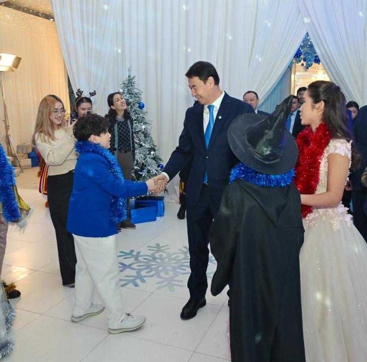 От имени Президента Республики Казахстан Касым-Жомарта Токаева аким Алматы Дархан Сатыбалды поздравил юных гостей с наступающим Новым годом, пожелав им крепкого здоровья, благополучия, успехов в учебе и исполнения заветных желаний.