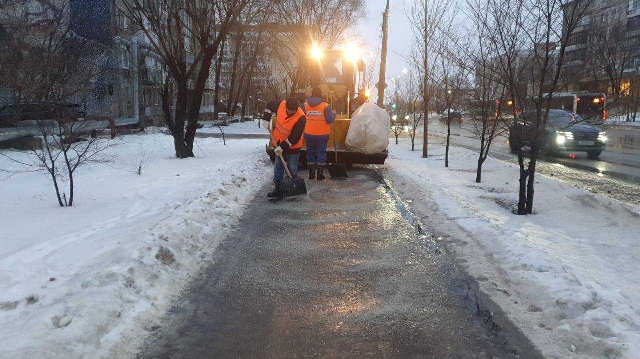 В целях обеспечения безопасного движения горожан дороги, тротуары и улицы посыпают технической солью.