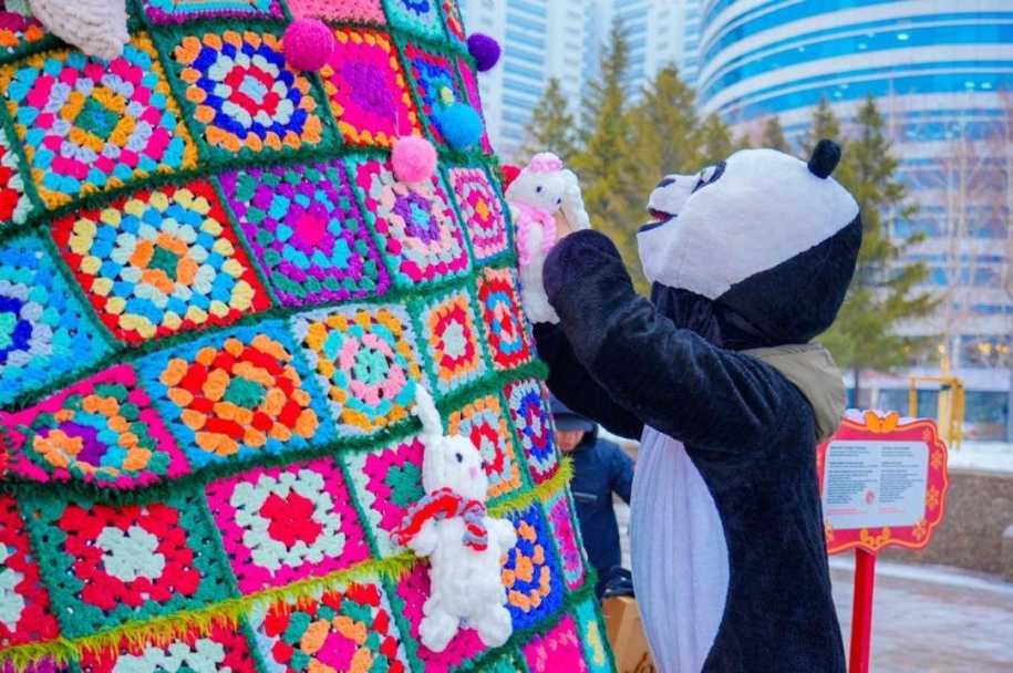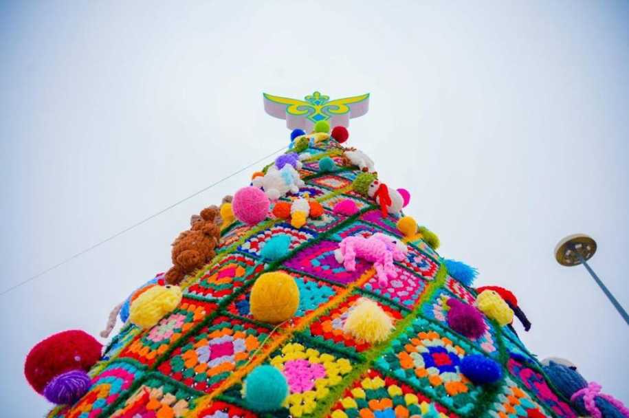 Проект эко-елки в стиле құрақ-көрпе вернулся в город по просьбе жителей. Впервые он был реализован в 2020 году.