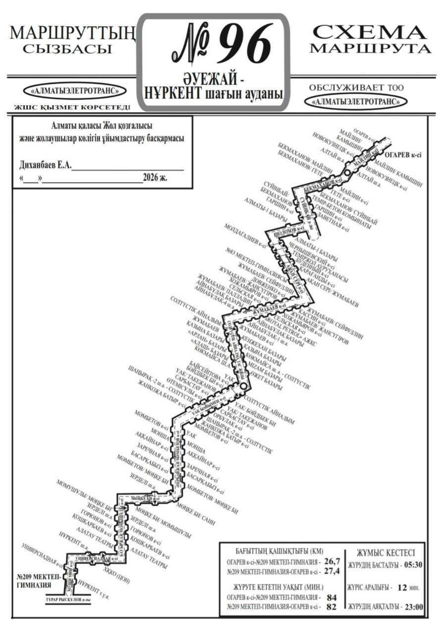 С 16 января в Алматы начнет работу новый автобусный маршрут №96. Об этом сообщили в Транспортном холдинге города, передает kazlenta.kz.