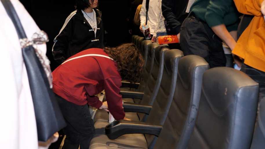 Покидая зал, зрители собрали пустые стаканы из-под напитков, упаковки от попкорна и другой мусор, выбросив его в специальные контейнеры. Зал после сеанса остался чистым.
