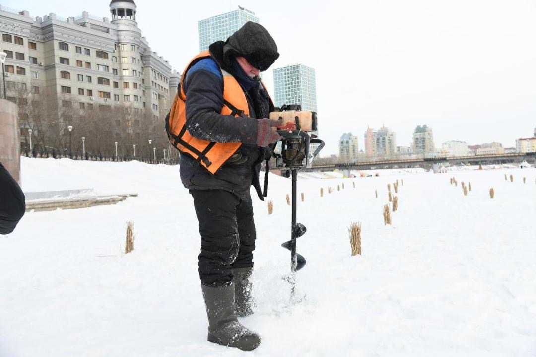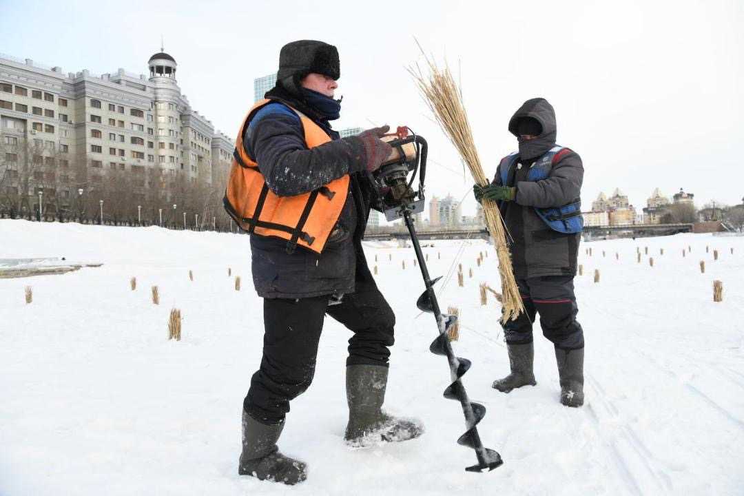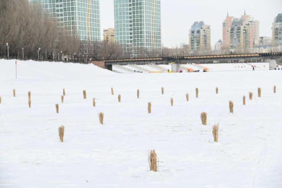 На текущий момент установлены снопы из камыша. Работы завершены на четырех участках реки от моста «Аркар», до моста «Марал», от моста «Қараөткел» до пешеходного моста «Атырау», от пешеходного моста «Серуен» до моста «Тулпар», а также от моста «Тулпар» до района газовой аппаратуры. Всего обустроено 16 прорубей, 840 лунок и 32 майны, – добавила представитель управления.