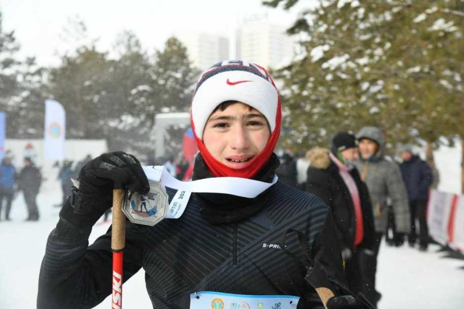А его 13-летний сын Ермухамет впервые стал призером лыжных гонок.