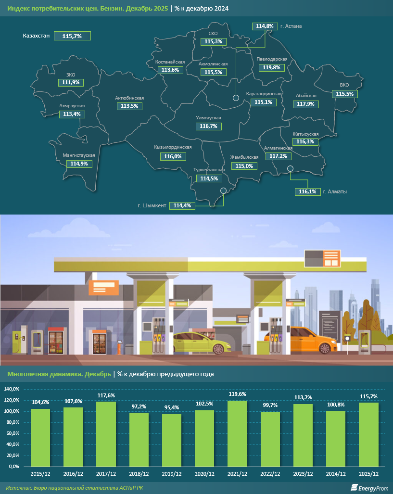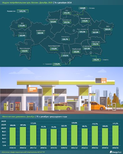 На фоне роста производства розничные цены на бензин по итогам декабря 2025 года увеличились на 15,7% в годовом выражении, что стало одним из наиболее заметных скачков за последние пять лет. Для сравнения: годом ранее рост составлял лишь 0,8%.