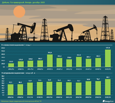 Согласно данным БНС, в 2024 году в стране было добыто 26 млрд кубометров природного газа в газообразном состоянии – на 7% больше, чем годом ранее. В 2025 году объём вырос ещё на 5,8%, достигнув рекордных 27,5 млрд кубометров.