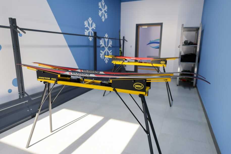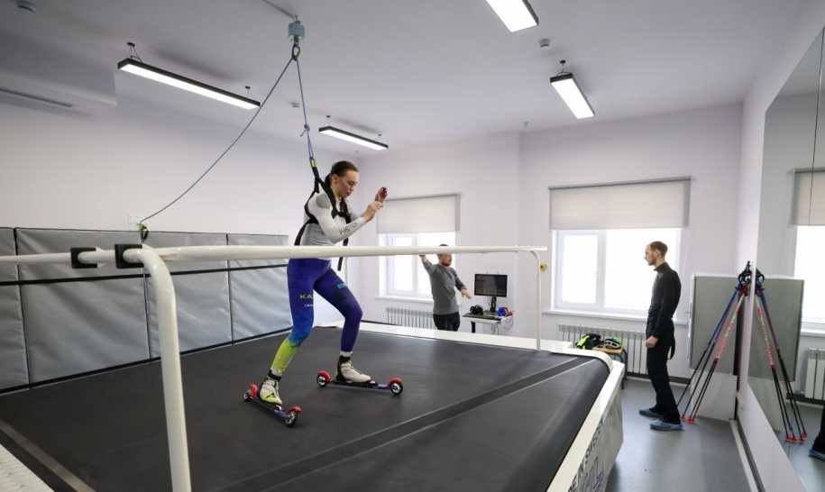 Инфраструктура базы включает просторный тренажерный зал, оснащенный силовыми установками и специализированным оборудованием, в том числе тренажером «ERCOLINA». Особое внимание уделено инновационному оборудованию: установлен профессиональный симулятор «Skate Treadmill RL3500E» для круглогодичной отработки техники и повышения выносливости, позволяющий имитировать технику конькового хода, регулировать скорость и угол наклона. Тренажер дает возможность точно настраивать интенсивность нагрузок и организовывать безопасные тренировки под контролем специалистов, осуществлять объективную и системную оценку прогресса, что особенно важно при подготовке спортсменов. Кроме того, предусмотрены помещения для подготовки, хранения и сушки лыж и спортивного инвентаря.