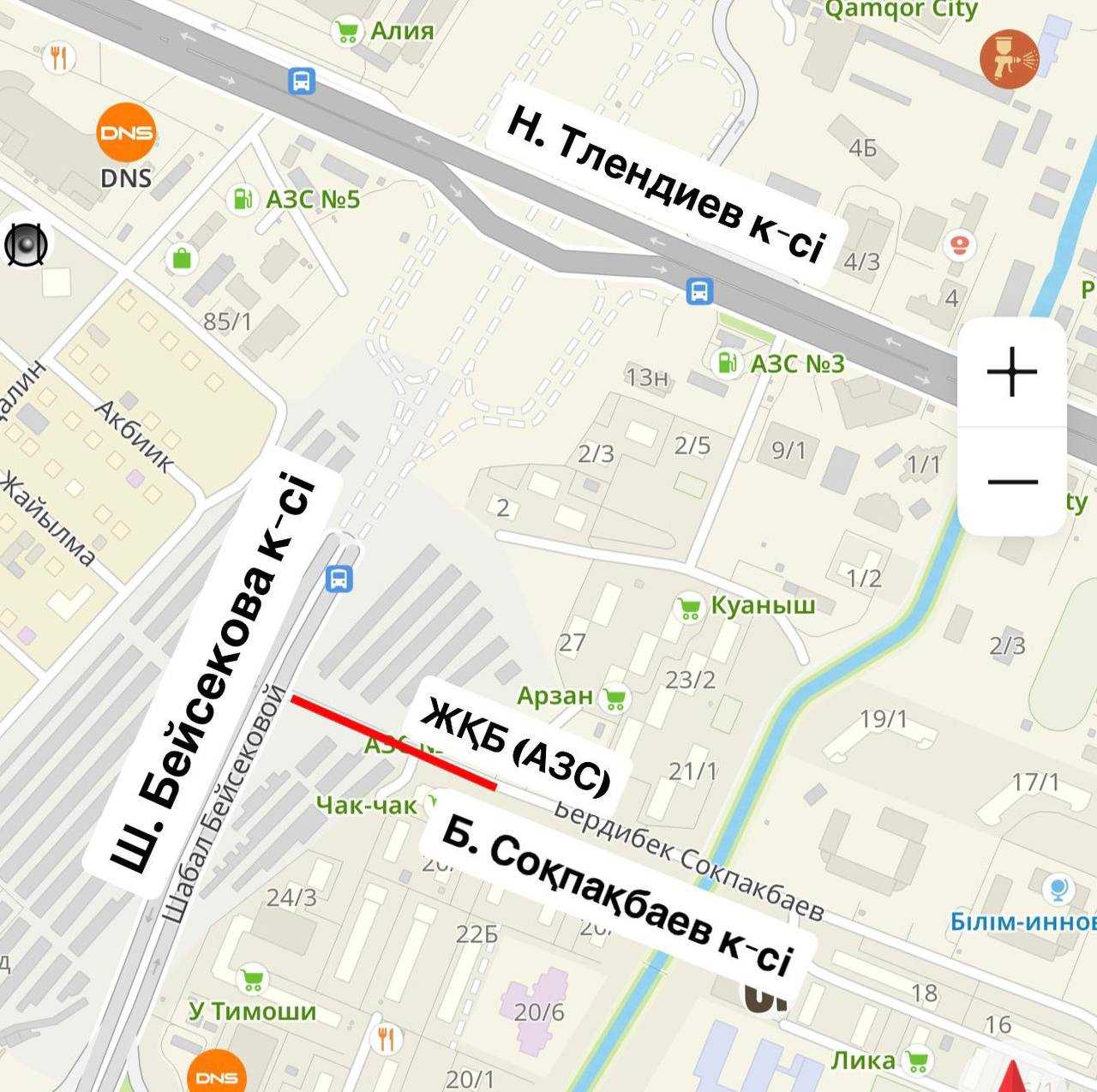 Работы будут проходить на участке от улицы Ш. Бейсековой до автозаправочной станции «Аурика». В связи с этим с 17 февраля по 15 марта движение транспорта на данном отрезке организуют по одной стороне улицы.