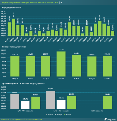 Одновременно с ростом производства продолжается подорожание питьевого молока. В январе 2026 года цены выросли на 0,4% по сравнению с декабрём. В годовом выражении удорожание составило 9,2%. Молоко жирностью 2,2%–2,5% подорожало на 8,9%, 3,2%–4,5% – на 9,4%, более 6% – на 9,3%.