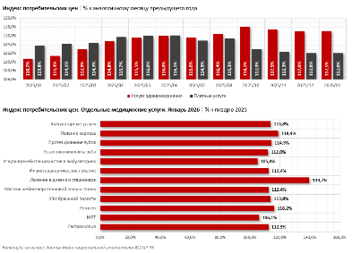 При этом рост цен в медицине опережает общее подорожание платных услуг. С лета прошлого года индекс цен в секторе здравоохранения стабильно выше среднего по рынку. Например, в январе 2026 года разница составила около пяти процентных пунктов – медицинские услуги дорожали заметно быстрее остальных.