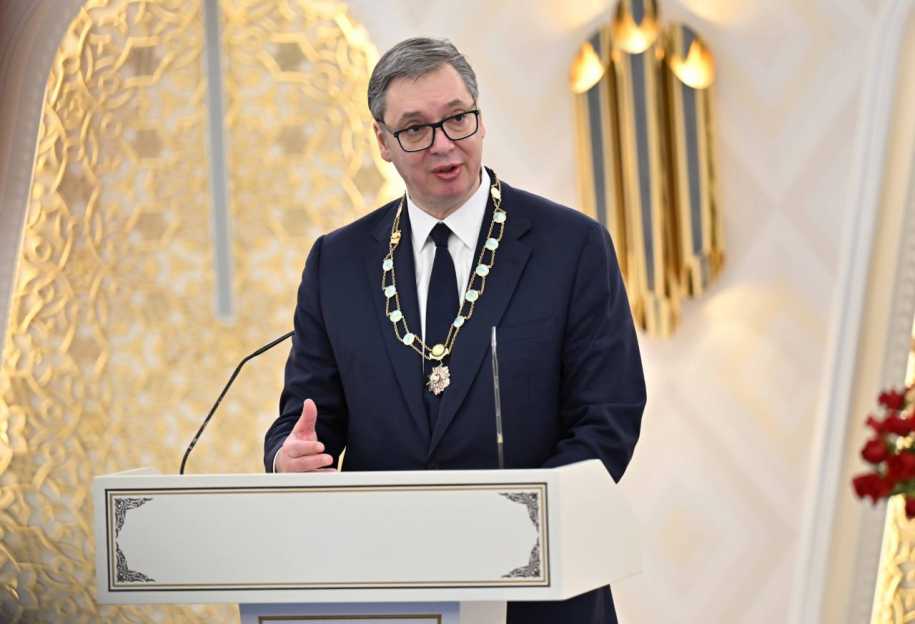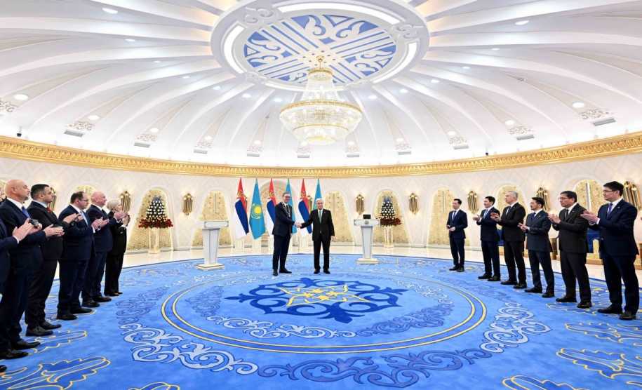 За значительный вклад в упрочение связей между двумя странами Касым-Жомарт Токаев вручил Александру Вучичу высшую государственную награду Республики Казахстан – орден «Алтын Қыран».
