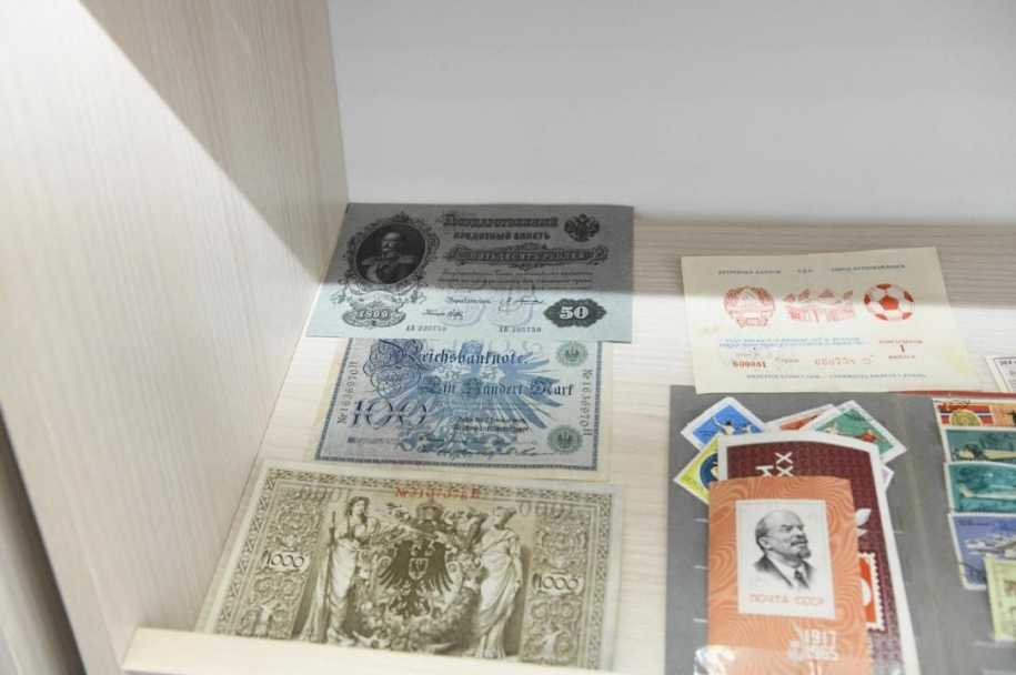 Школьник продемонстрировал свою коллекцию антикварных экспонатов, в которую вошли монеты и банкноты разных стран и эпох, почтовые марки, значки, нагрудные знаки, а также фотоаппараты и элементы фототехники.